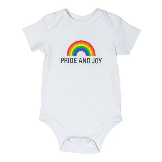 Pride begins early! Make a statement with this Pride baby bodysuit. Features button snaps and screen printed rainbow message.