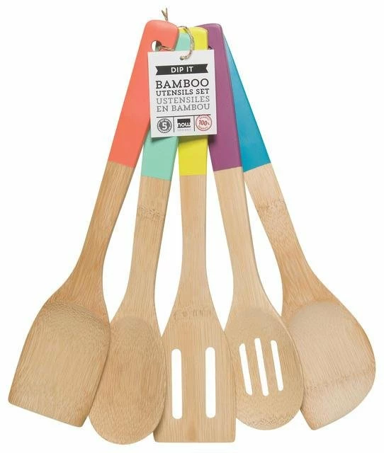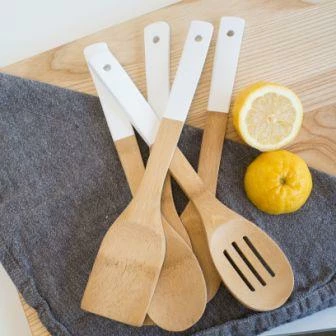 Ban bland from the kitchen by introducing utensils with dipped handles. Hard-working bamboo gets dressed up with an array of rich colors.