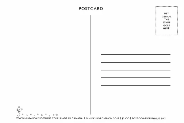 This postcard has cute birds holding doughnuts.