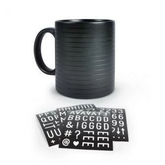 Get ready to espresso yourself with WORD OF MOUTH. This DIY matte black mug with letter board details provides you with over 120 semi-permanent adhesive characters so you can tell the world how you really feel. Show off your chosen mantra while powering up for the day. WORD OF MOUTH is a 16 oz mug, made from food safe ceramic.