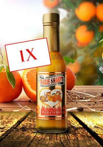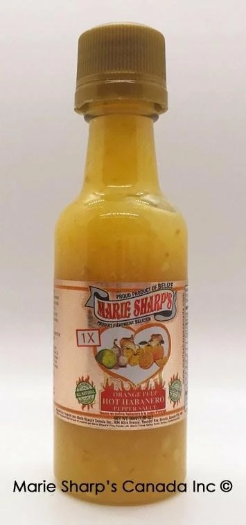 INGREDIENTS: Orange Pulp, Select Yellow Habanero Pepper, White Vinegar, Onions, Salt, Lime Juice, and Garlic.
