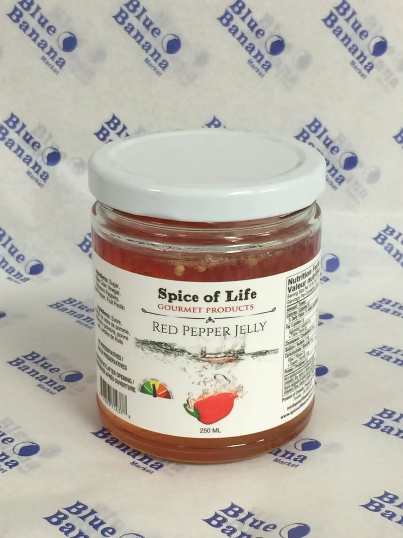 A red pepper jelly from your favourite gourmet natural hot sauce company. Sweet heat that’s also a little heart, red pepper jelly is a perfect match for cheese and crackers but can also be used for a base for salad dressings and a glaze for fish or meat.Â